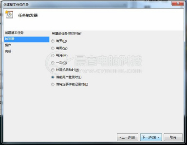 2,把[当前用户登录时]前面选中,再按下一步;如下图: