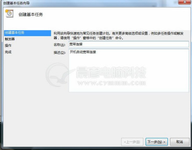 从XP升级到WINDOWS 7很多朋友会发现XP下把宽带连接的快捷方式复制到系统的启动项实现自动拨号连接宽带的方法已失效,那么怎么办呢,难道每一次开机都要手动连接一次吗?其实有一个小方法完全可以解决这一问题,而且不用去安装其他的拨号软件,只需要在系统任务计划中创建一个计划任务便可,方法如下: